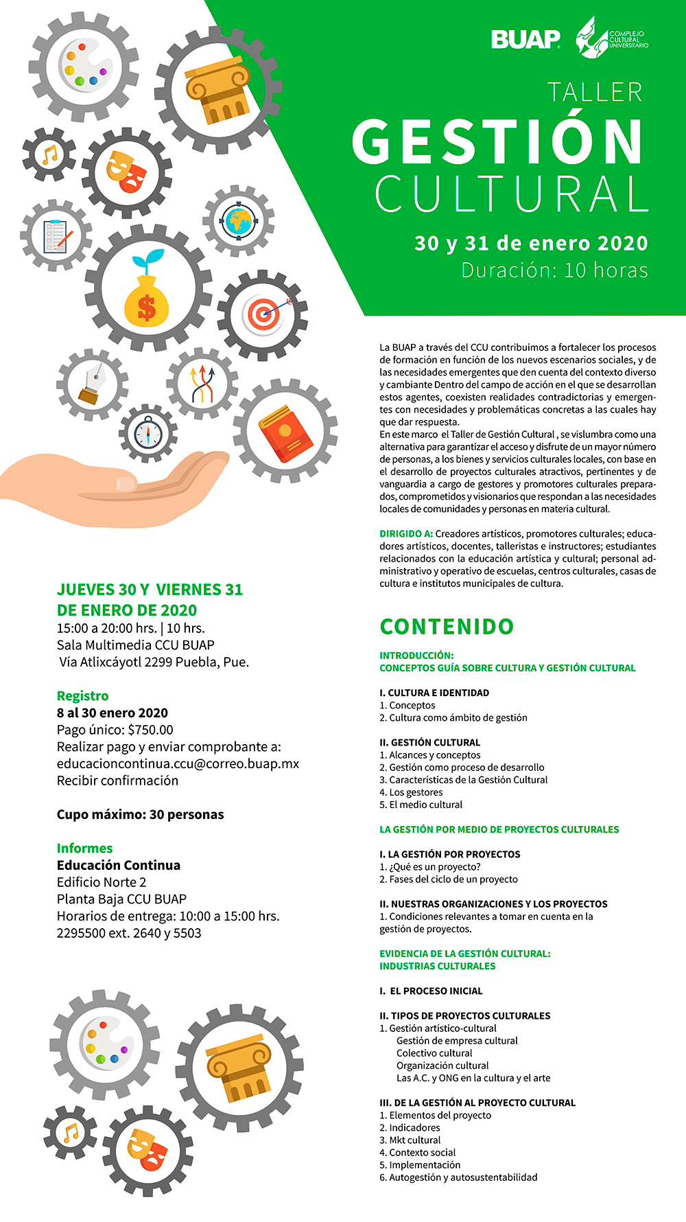 Complejo Cultural Universitario, Educación Continua Cupo máximo 30 personas 2295500 ext. 2640 y 5503