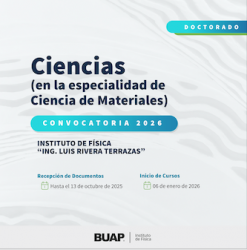 Archivo asociado: Doctorado-Ciencias-especialidad-Ciencias-Materiales.pdfImagen: Fecha: Tuesday, May 27, 2025 - 16:30Fecha fin: Tuesday, January 6, 2026 - 16:30Categoría: DoctoradosÁrea de Conocimiento: Ciencias Exactas
