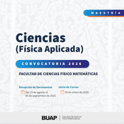 Archivo asociado: Maestria-Ciencias-Fisica-Aplicada.pdfImagen: Fecha: Tuesday, May 27, 2025 - 14:00Fecha fin: Tuesday, January 6, 2026 - 14:00Categoría: MaestríasÁrea de Conocimiento: Ciencias Exactas